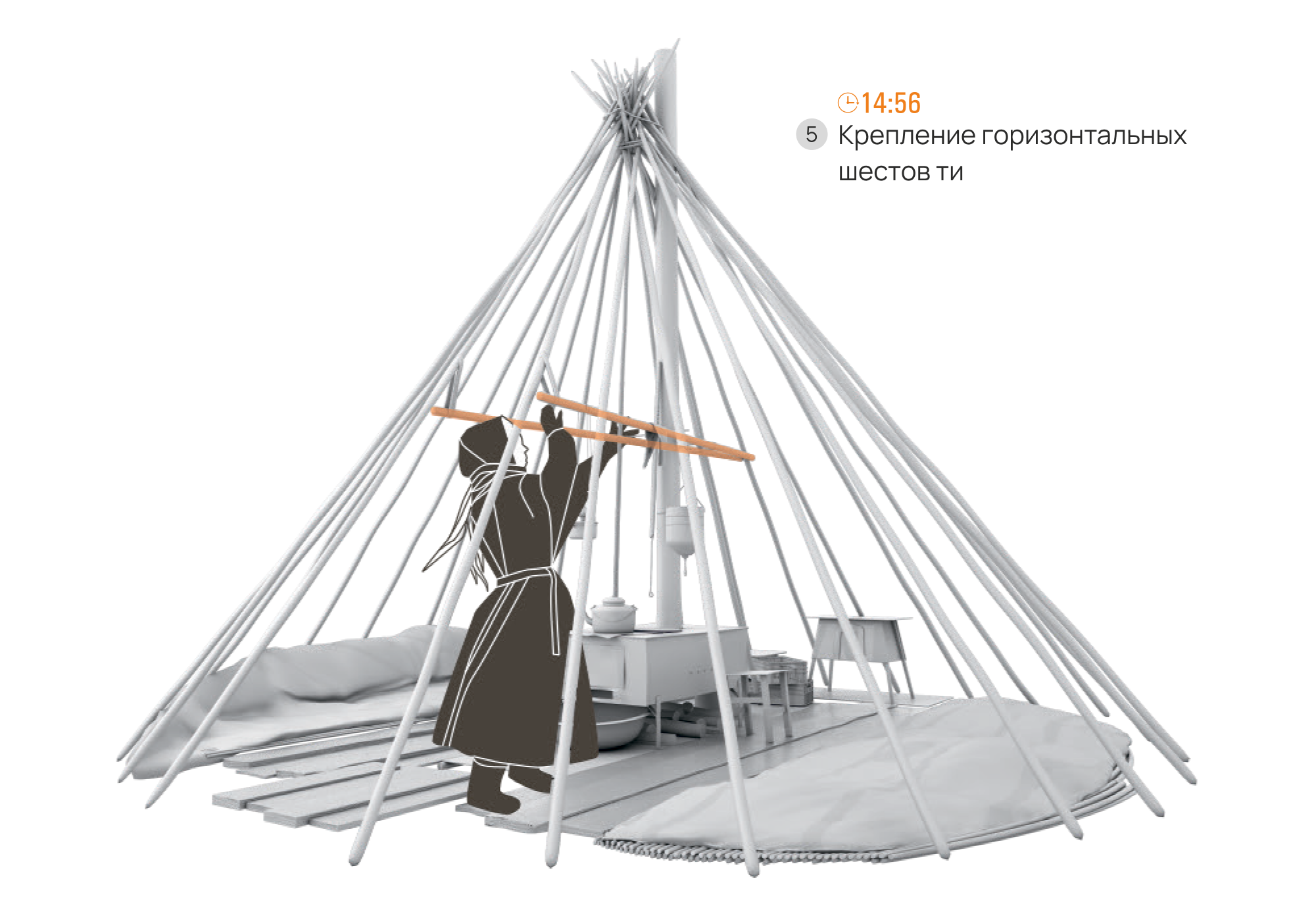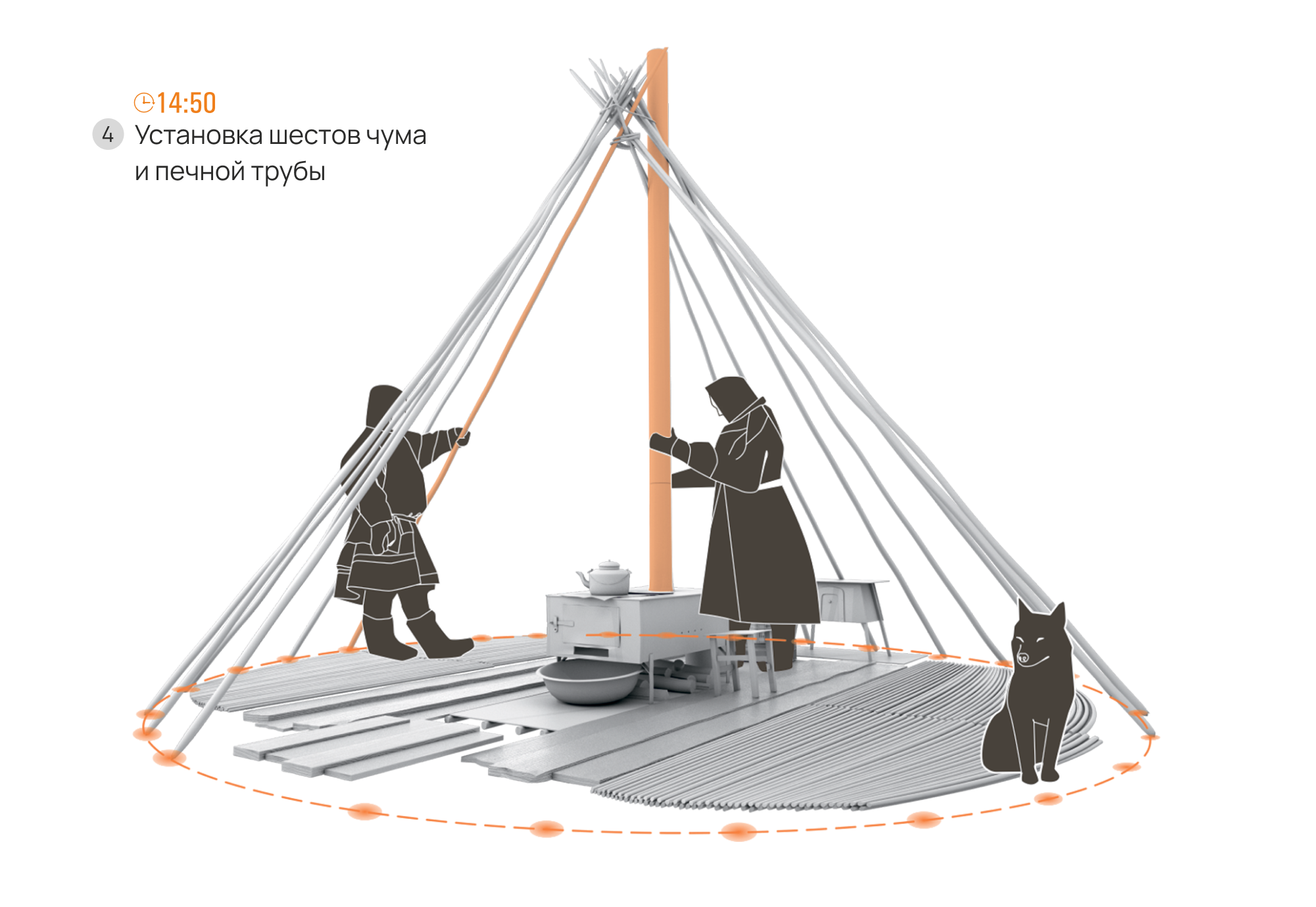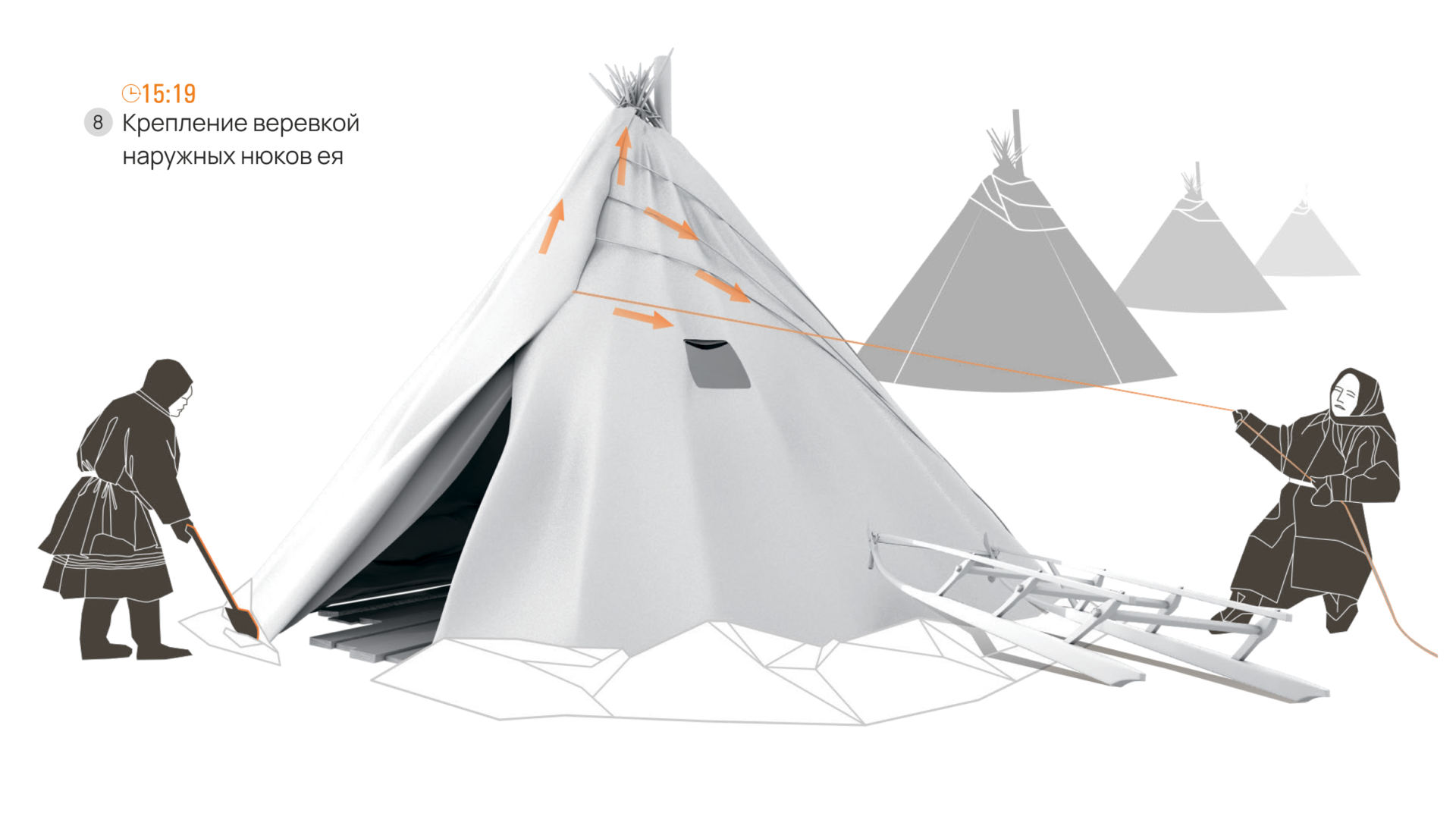 Центром жилища являлся очаг (костер, печь-буржуйка). Если от очага провести линию через си за пределы чума, то она выйдет на священную нарту хэхэ-хан, если линию провести в обратную сторону через нё (вход), она укажет на «грязную» нарту сябу.
