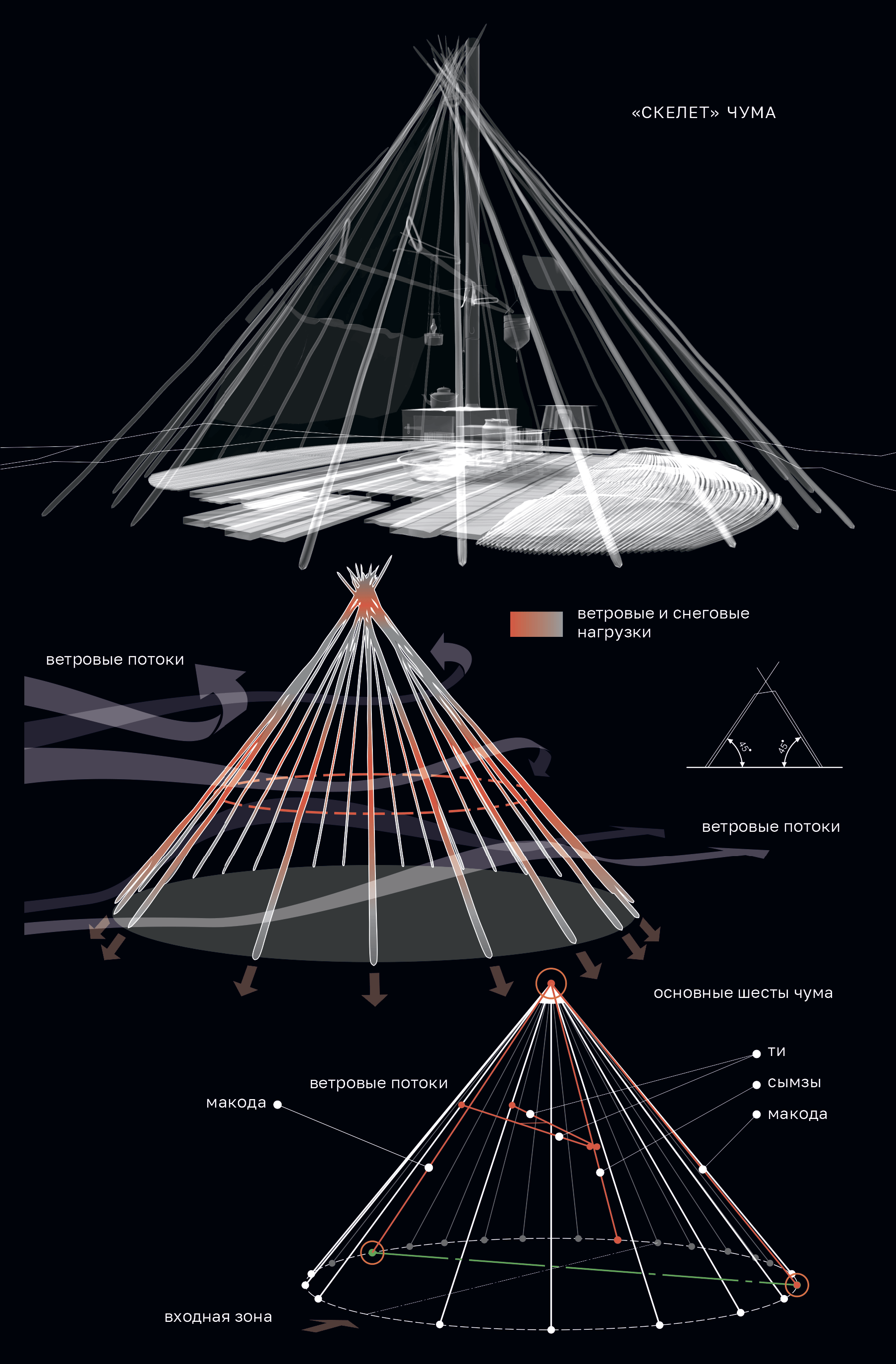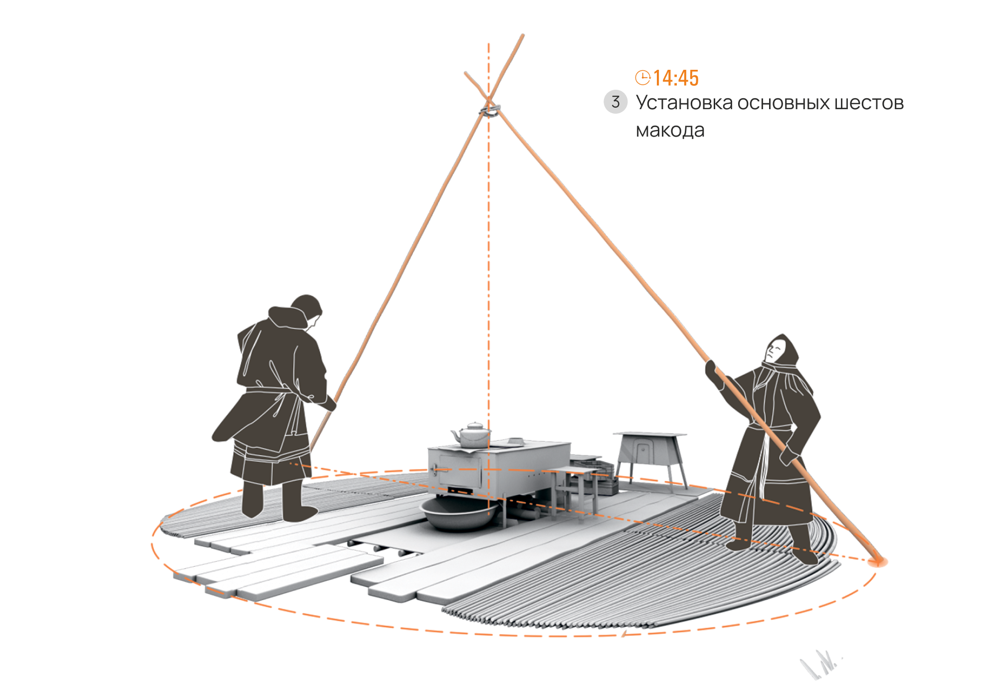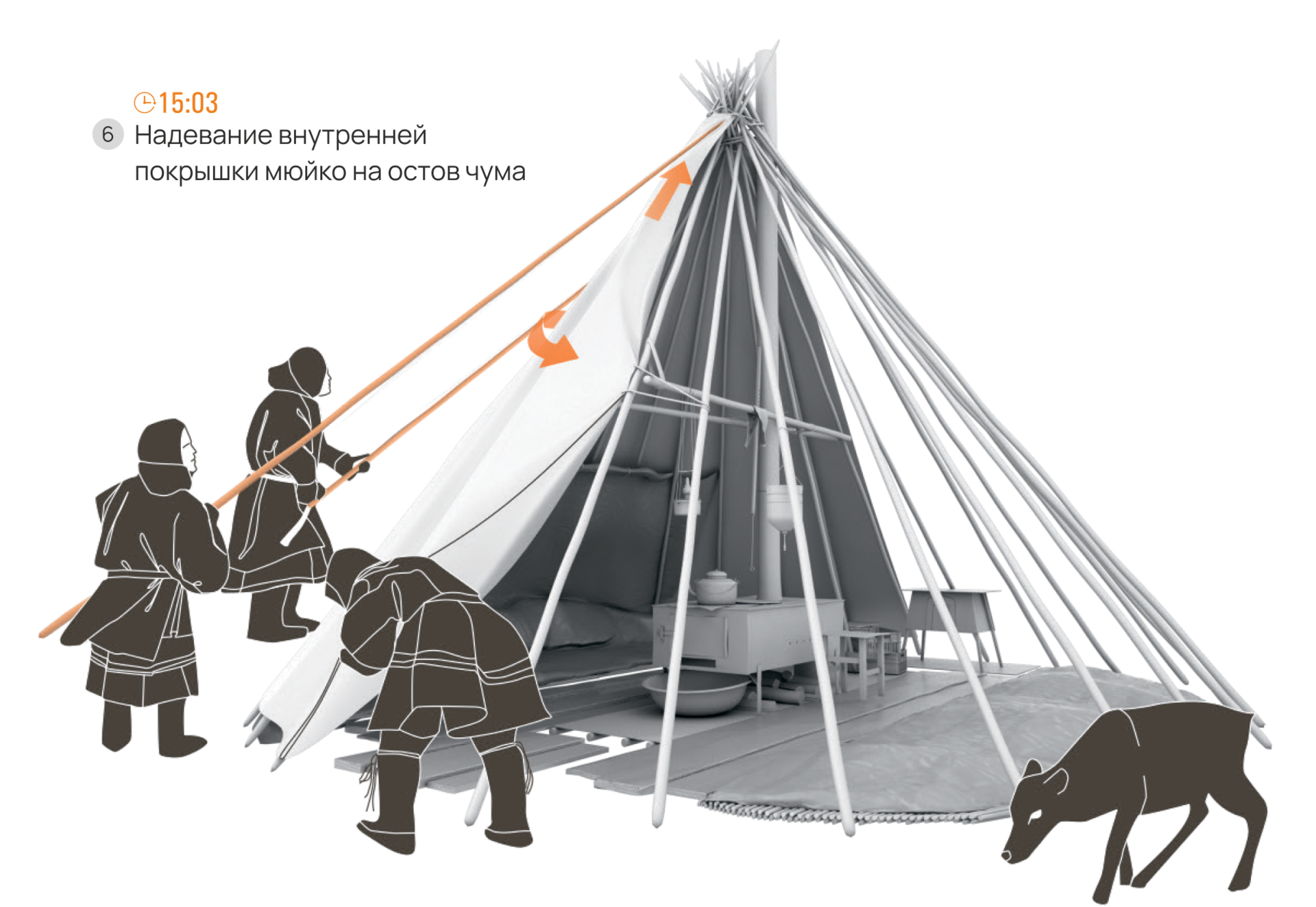 Центром жилища являлся очаг (костер, печь-буржуйка). Если от очага провести линию через си за пределы чума, то она выйдет на священную нарту хэхэ-хан, если линию провести в обратную сторону через нё (вход), она укажет на «грязную» нарту сябу.